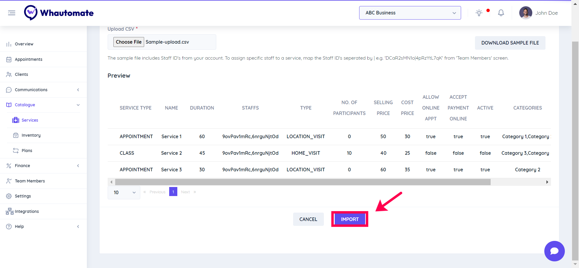 #### Step 4:After uploaded the file click the Import Button&#x20;