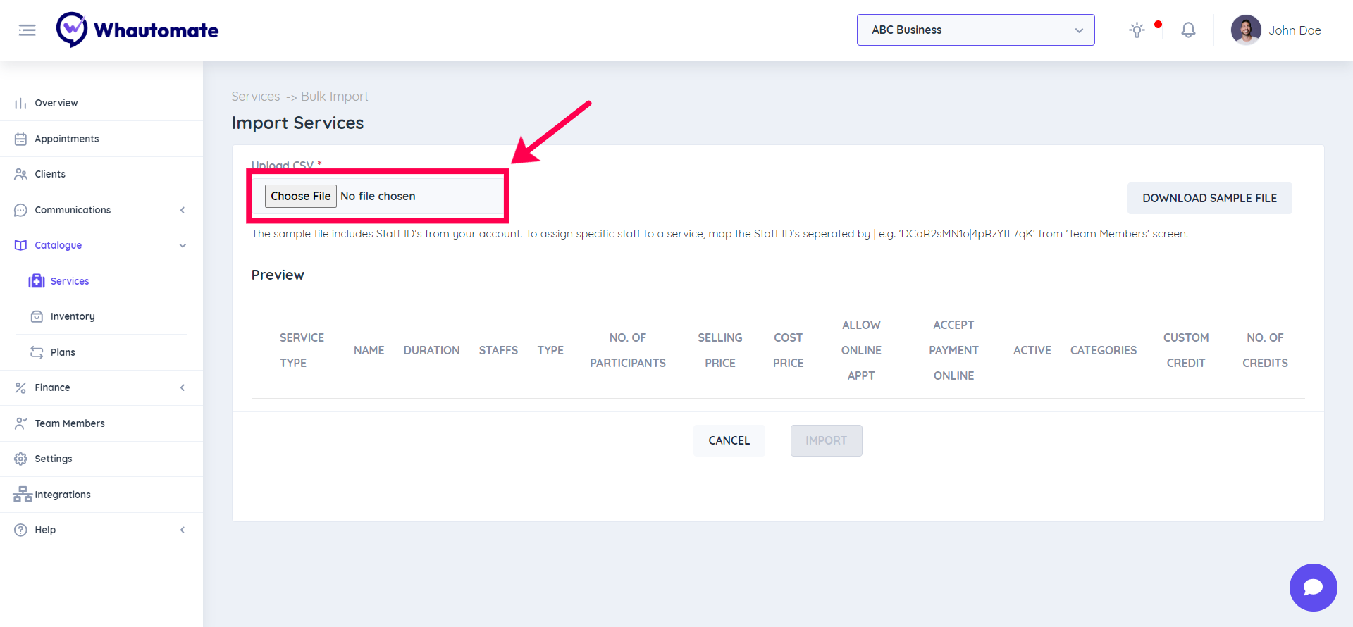 #### Step 3:choose a file in which there you have details about the Services you  want to import