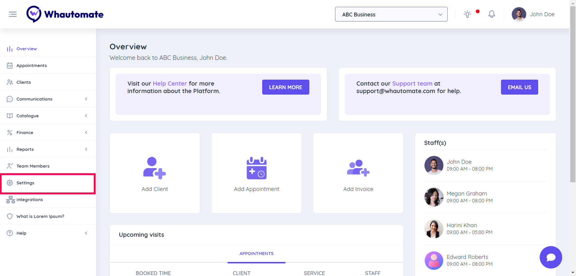 Step 1: Go to the **Whautomate** app and Click the **Settings** menu option