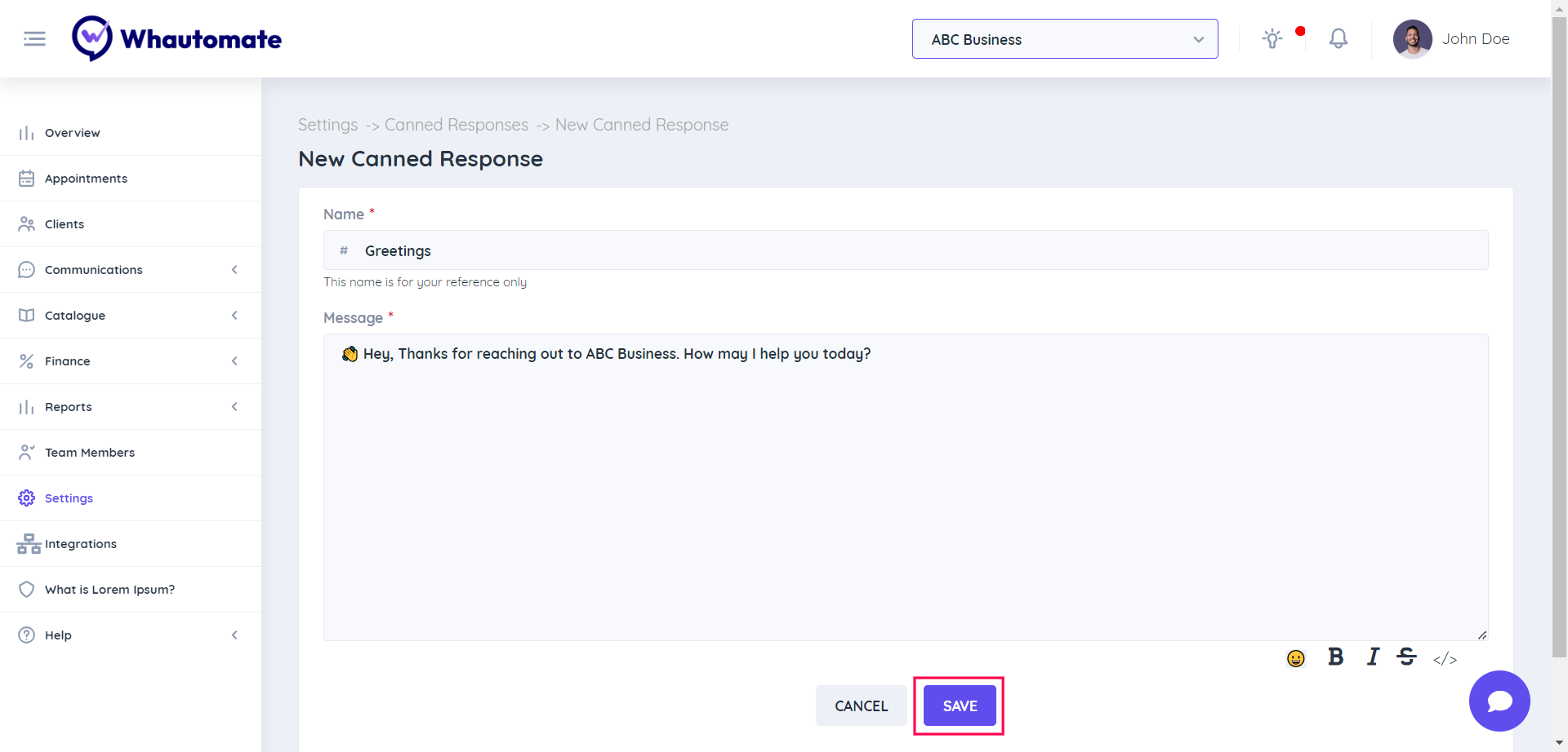 Step 4: **New Canned Response 👇**