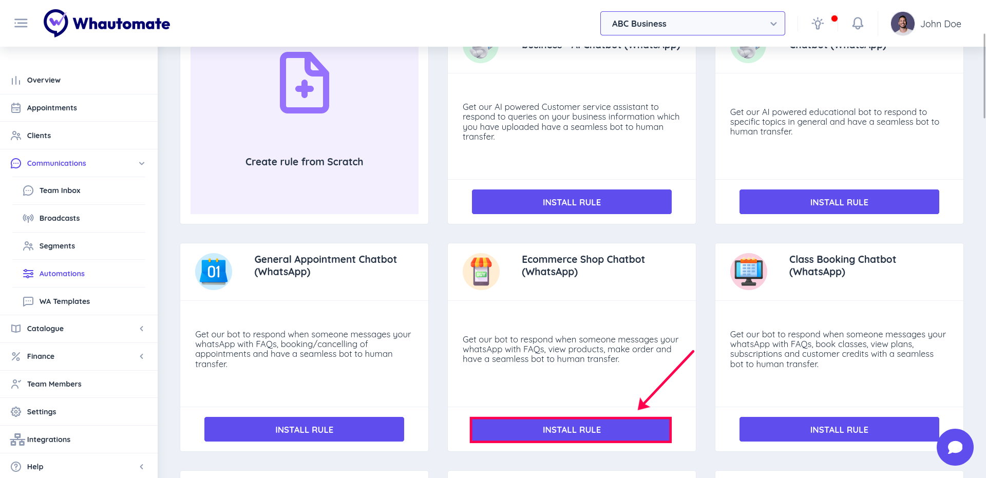 #### step 5: **Please note that only one chatbot template can be installed at a time per channel. You can simply delete all the previously installed rules under a channel to install a new chatbot template.**