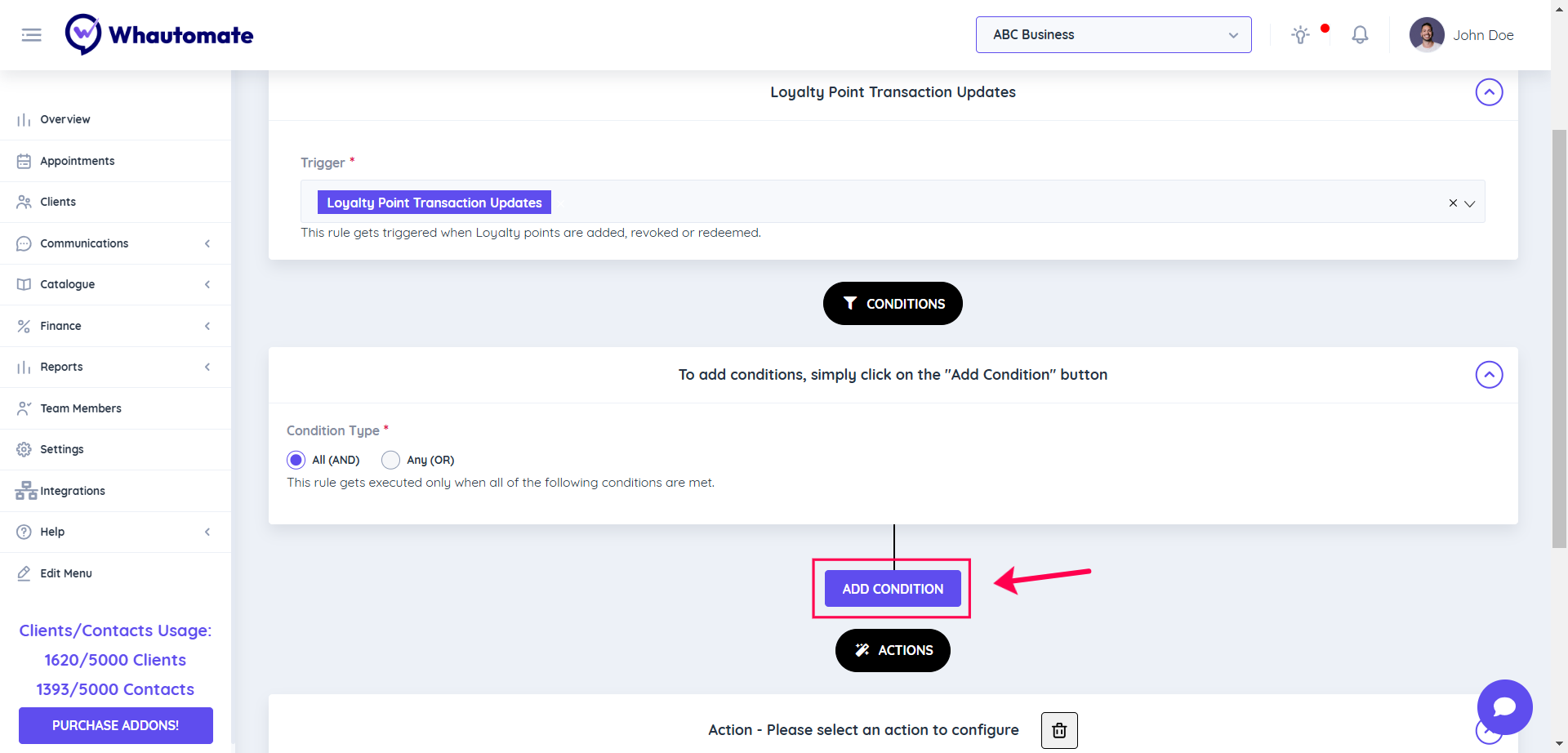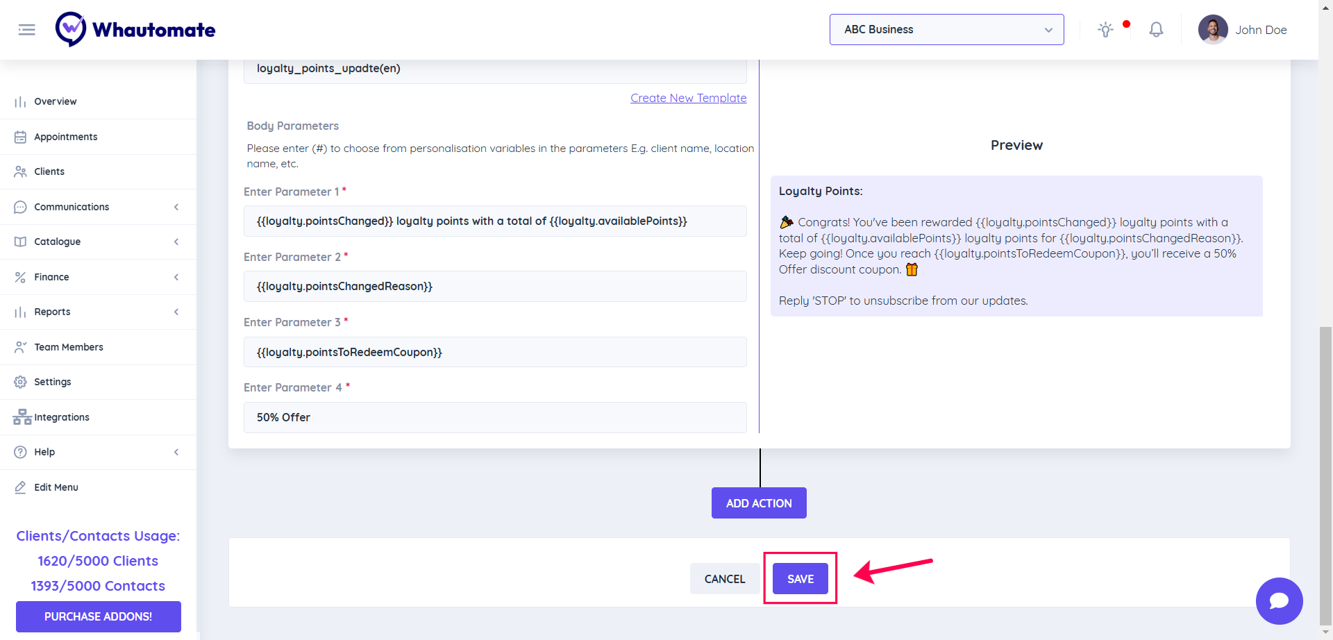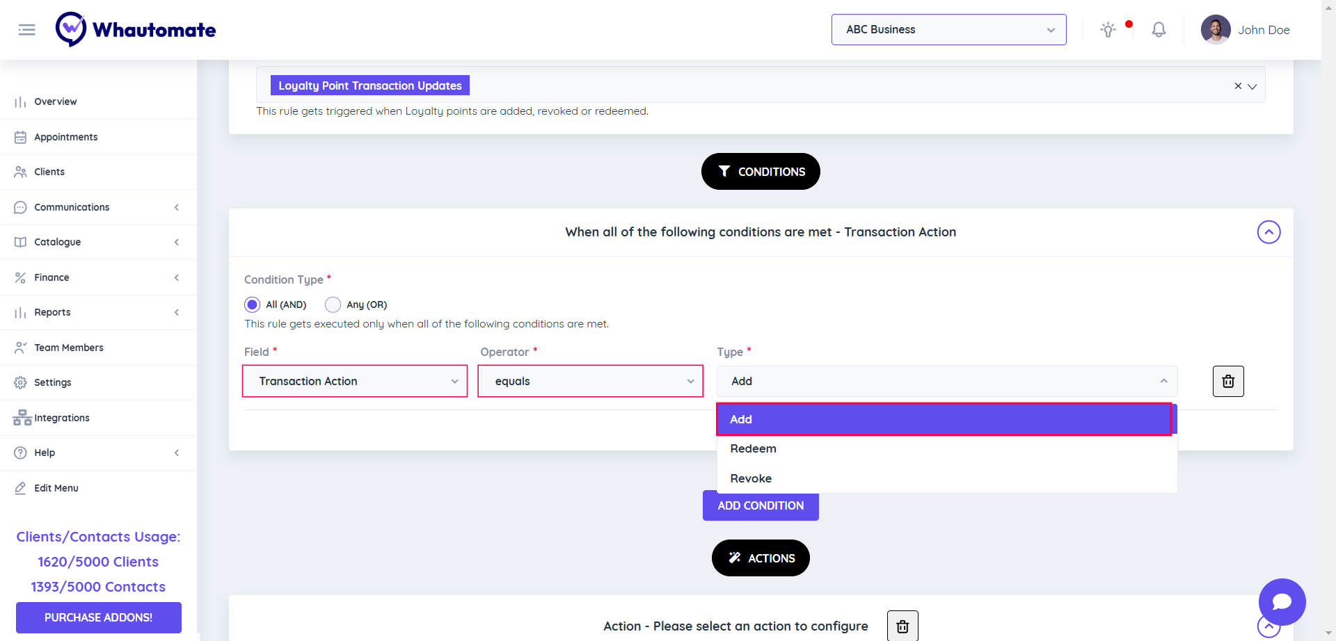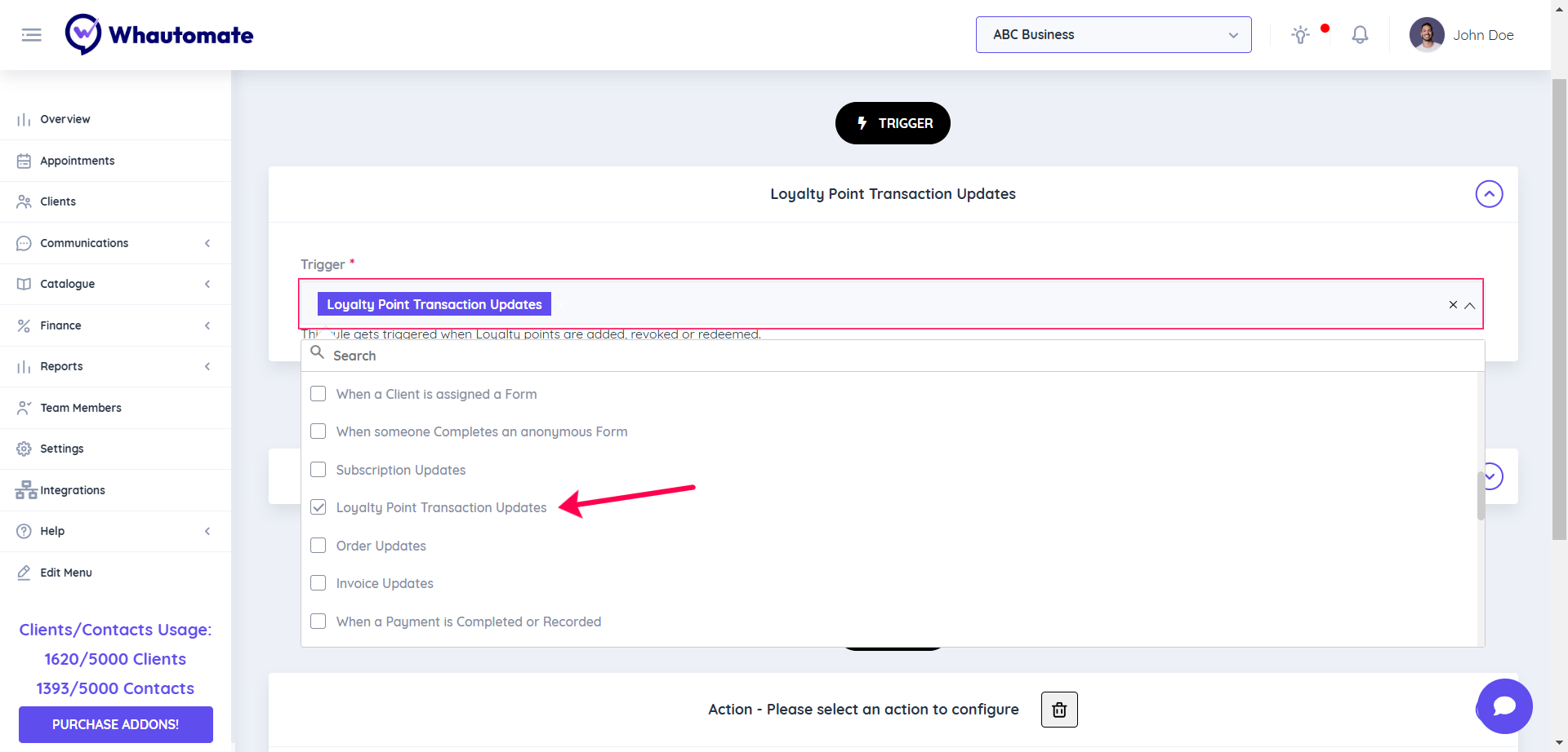 Note: The action setup process for sharing loyalty coupons with clients is similar to the process for loyalty points transaction updates with clients. If you’ve already set up notifications for loyalty points transaction updates, you can follow the same steps for coupon sharing.