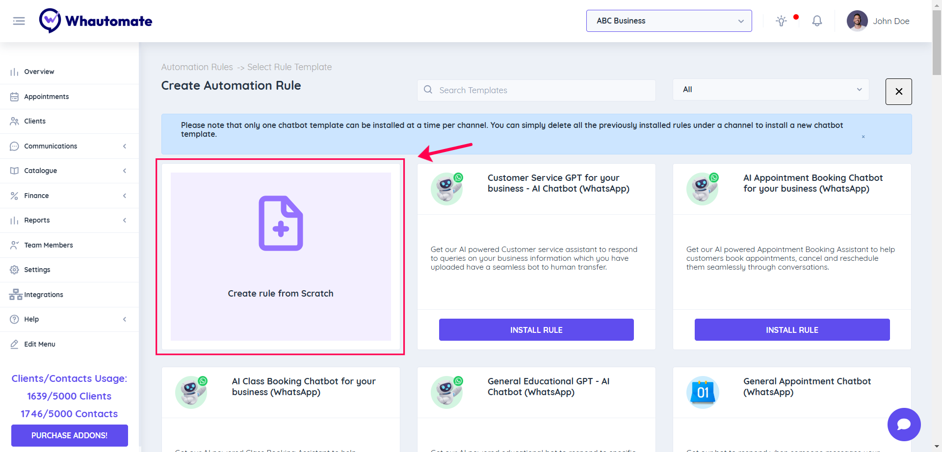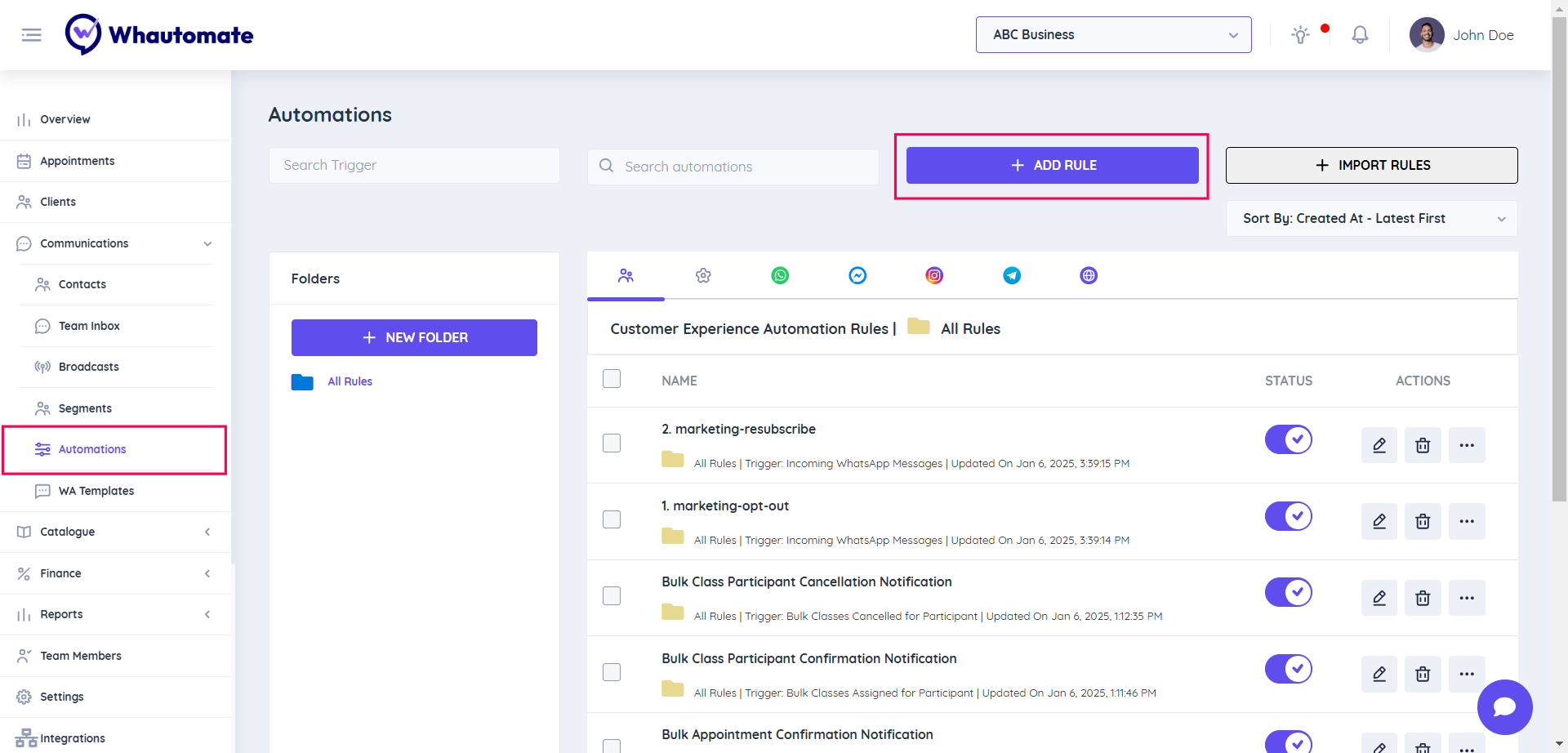 Go to the Whautomate app then click the Automation menu and select the Add Rule button as shown below picture 👇
