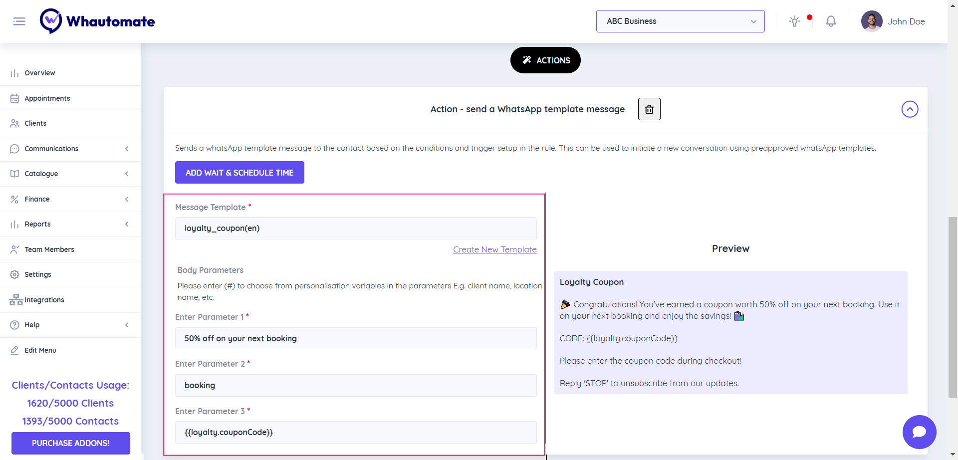 Choose the WhatsApp template message you want to use for the Share Loyalty Coupons with Clients.