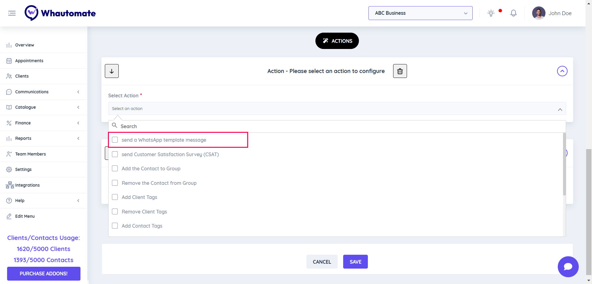 For WhatsApp: Eg. I Select a Send a WhatsApp template message action and fill in the required details. 👇